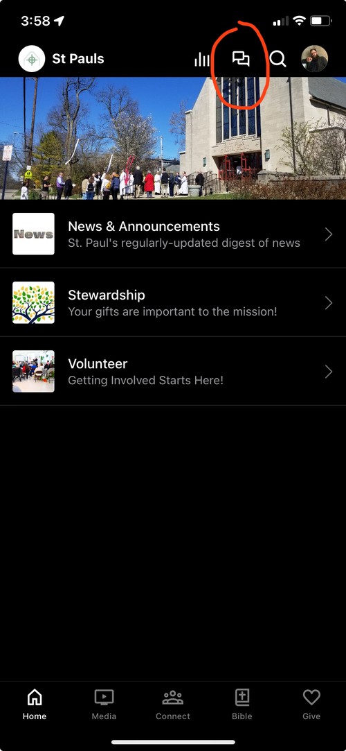 Did you know that you can subscribe to different groups here at St. Paul's, like the Men's Group, through the new app? Become part of ongoing conversations with your fellow parishioners! Signing up is easy. Log in to the app (make sure you've created a profile! — let Fr. Dan know if you're having a hard time with that), and click the discussion button in the top right hand corner (see the photos on the left). From there, click Discover and then scroll down until you find groups you're interested in. Click on the picture and click "Join". This process will work for any group that has open enrollment. Click here for a longer tutorial of this process.