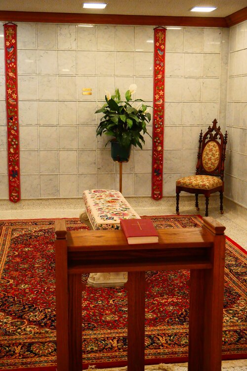 St. Paul's Columbarium is the lower level of The Cloister, built in 1983-84 by the family of Loren M. Berry in his memory. The Columbarium, open during regular church hours, provides a tranquil spot for prayer and meditation as well as a place for burial and interment services. It is designed for easy access by stairway and elevator from the church, chapel, and garden.